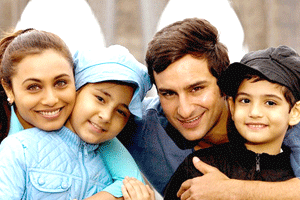 It would take nothing less than a divine intervention to foster peace and love between Ranvir and the vengeful tots. The good God himself takes the trouble of summoning one of his favorite fairies, Geeta (Rani Mukherjee), to go to the world of humans and do His work. And down she comes, cycling on a rainbow (like some lost sister of Lance Armstrong) and straight into the life of Ranvir and his four cute ill-wishers. What happens thereafter better is seen than written about.